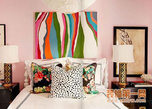 黑色的床头柜古朴,和同色边框的装饰画让这间寝室满是结实气质,而选择整体的粉色墙面,与寝室中的黑色构成光鲜的对比,弱化了空间的结实,使女性的美好渐渐渗入,花朵图案的床品和粉色的墙面相映成趣,让空间中结实和美好的对话加倍顺畅。
